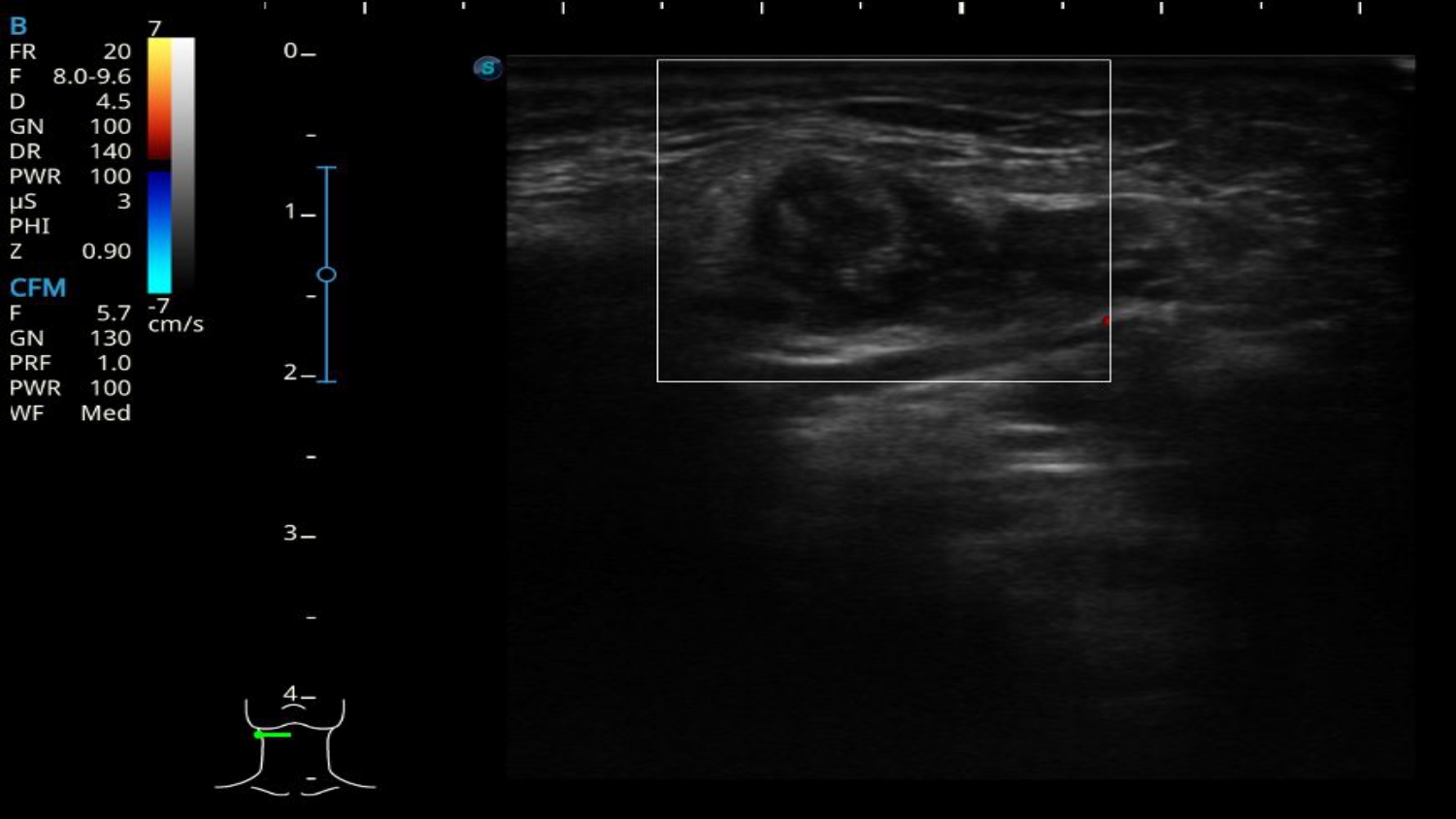 Paciente de 75 años sin alergias ni antecedentes a destacar. Acude a nuestro centro por palpación de nódulo submandibular derecho indoloro de una semana de evolución. No clínica infecciosa asociada. Se palpa nódulo de 1 cm no adherido a planos profundos, no fluctuante y no doloroso, de carácter duro pero elástico, sin otras lesiones colindantes. La exploración otorrinolaringológica es normal.