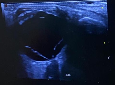 Se indica reposo y se deriva a Urgencias del hospital más próximo para valoración por Oftalmología. Se realiza dilatación pupilar y exploración con lámpara de hendidura, y junto a los hallazgos ecográficos se confirma el diagnóstico.