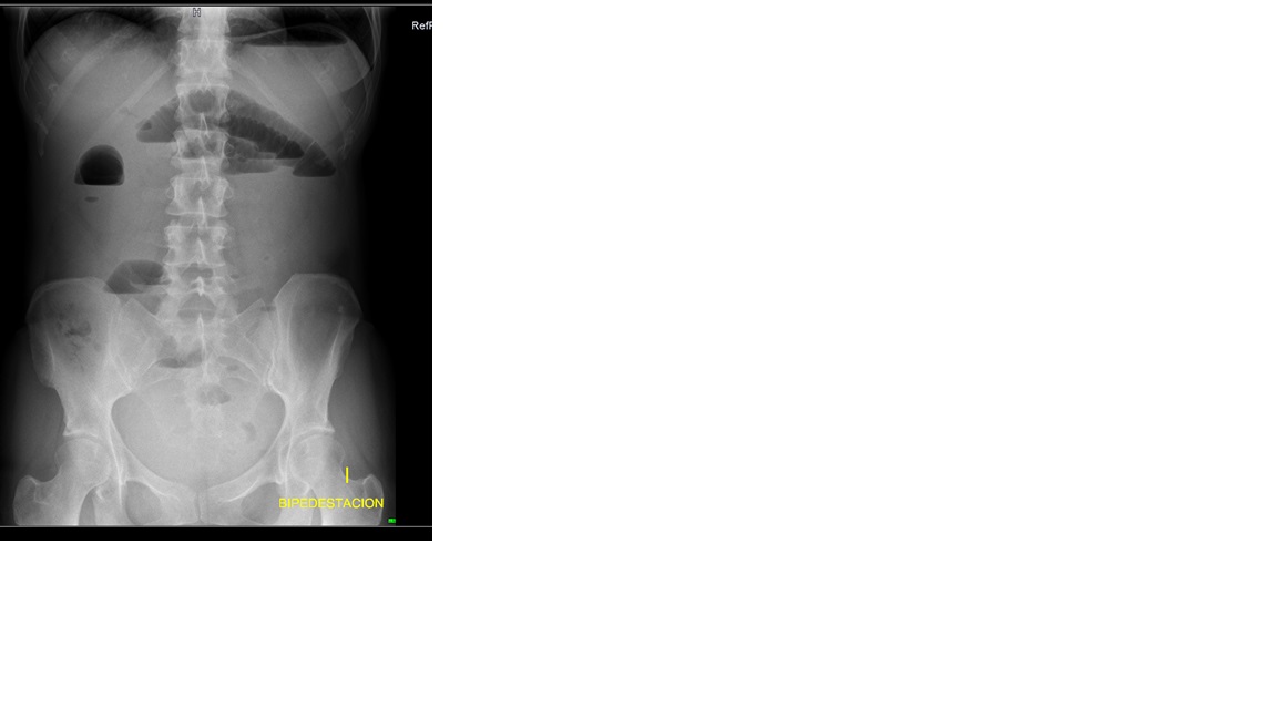 Rx abdomen: niveles hidroaéreos, dilatación de asas de delgado, de hasta 3,5 cm; no se observa gas en colon.