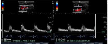 Pruebas complementarias. Eco-Doppler: se observa velocidad claramente disminuida en comparación con la contralateral a nivel poplíteo y pedio. Sospecha de trombosis paraneoplásica.