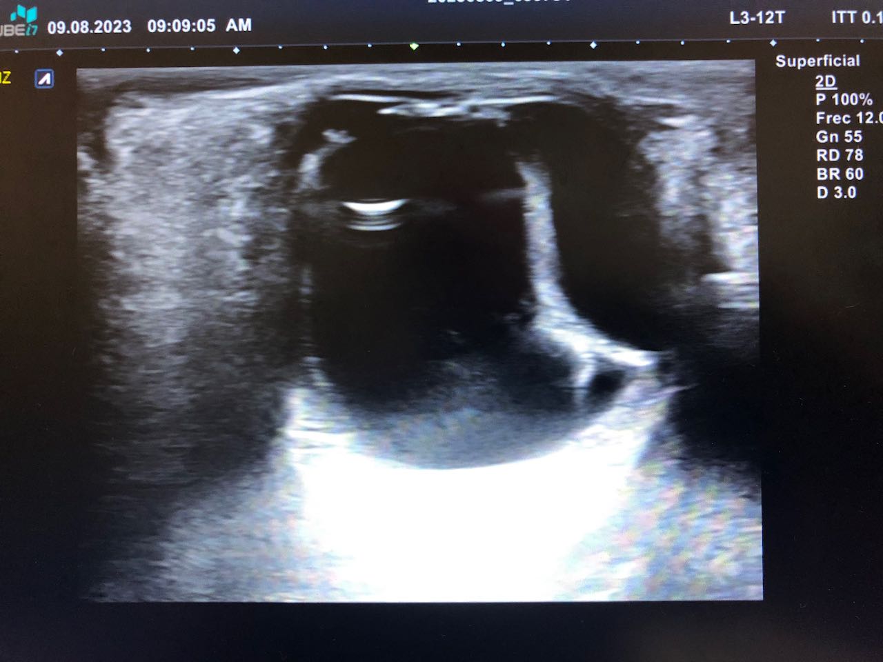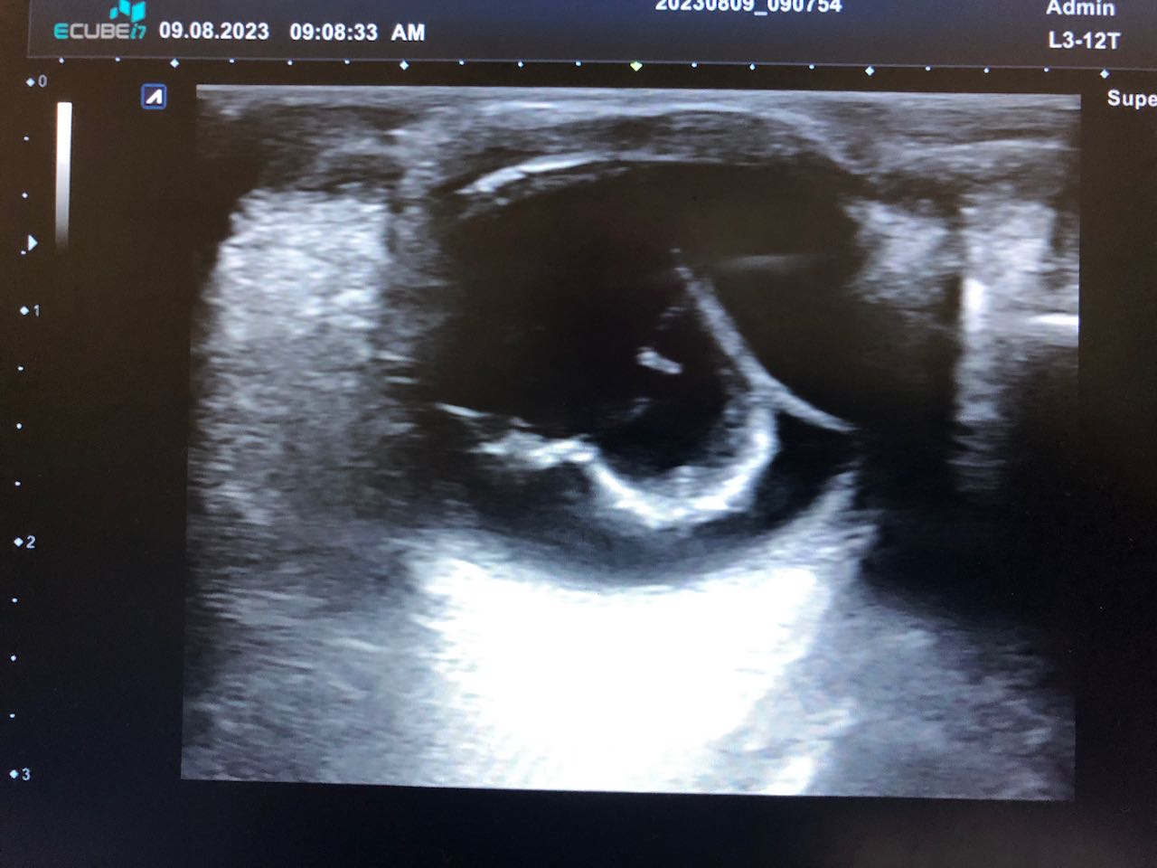 Se confirma desde Oftalmología el diagnóstico: Desprendimiento de retina casi completo junto a desprendimiento de Coroides temporal en OI de contenido hiperecogénico, no se aprecian masas.