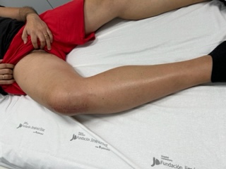 A nuestra valoración, paciente estable hemodinámicamente con TA 125/86 con FC 83, SatO2 98%. FR 9. Peso 85 kg. Edema generalizado de miembro inferior derecho sin eritema ni calor, no cordones venosos, Hommans negativo. Vasculonervioso conservado. Auscultación cardiopulmonar anodina.